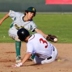 The Giants played back to back games this week to kick-off the second half of their 2017 season. At home versus both San Marin and Novato, Redwood played San Marin on Thursday night in a “must-win” type of game. The contest was tight through three innings, with solid pitching from Kyle Felder and some dazzling defensive plays from Jackson Barry. The Giants finally broke through in the bottom of the fourth inning after Sam Warren singled to left field. Nick Cook followed up with a double to right, advancing Warren to third base. With runners at second and third, starting pitcher, Kyle Felder, helped his cause with a single past the shortstop, scoring Warren and Cook (2-0, Redwood).