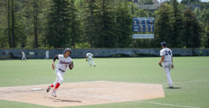 The score stayed 1-1 until the top of the third when Matt Birchenough led off with a sharp groundball single to left. He would then advance to second on a balk by the MC pitcher. Jesse Gassman then grounded out but Birchenough advanced to third on the play which would prove key as the next hitter, Jonathan Yu hit a fly ball which was caught in medium deep right field. Birchenough tagged up and headed for home just sliding under the tag after a strong throw from right that was on target. 2-1 Redwood.